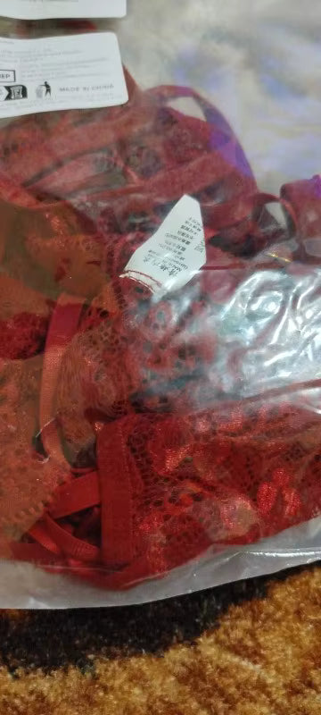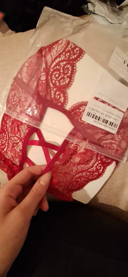 🔥 Rosso passione e pizzo floreale per un look davvero fatale.